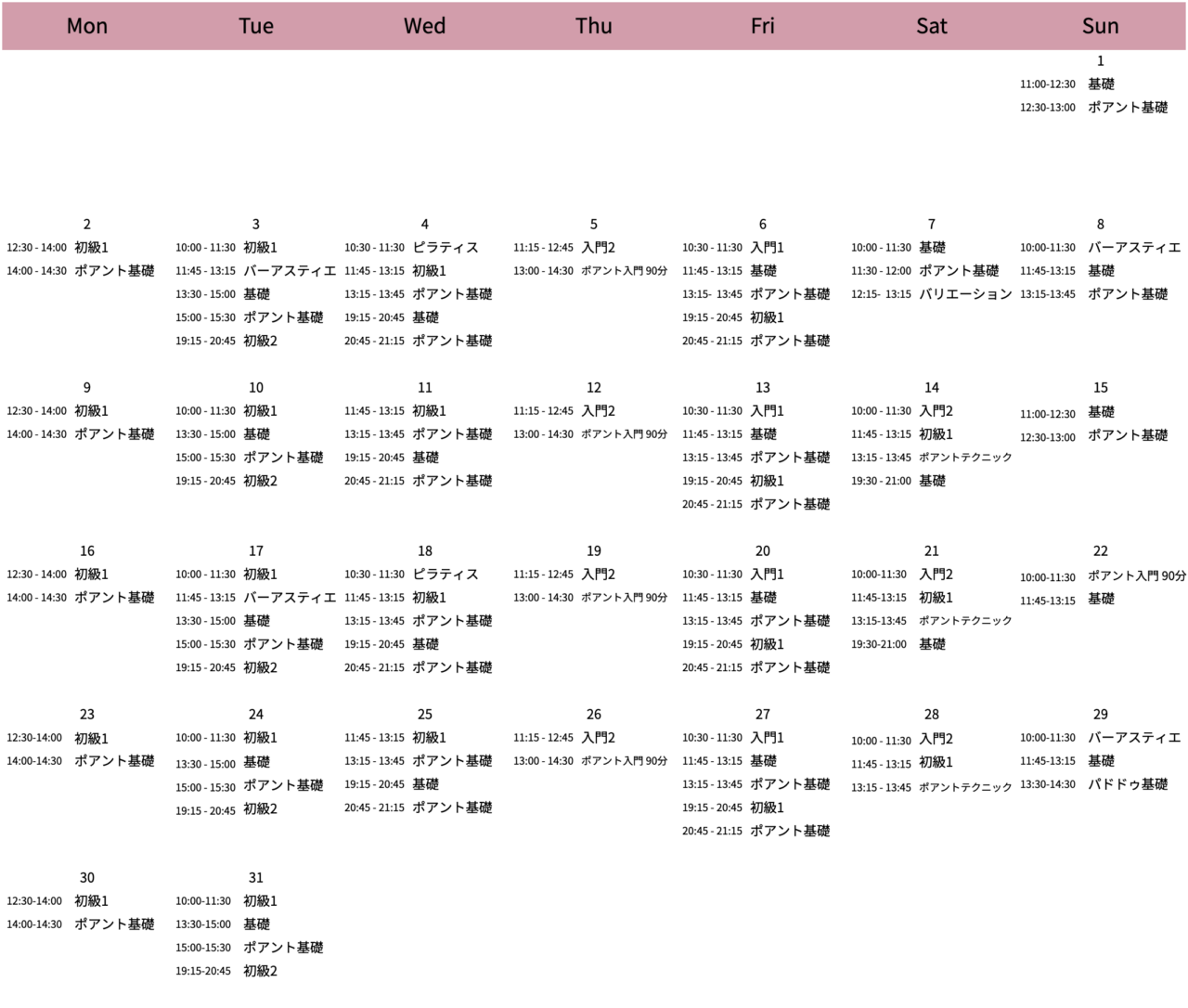 ※最新のスケジュールは会員サイトにてご確認ください。